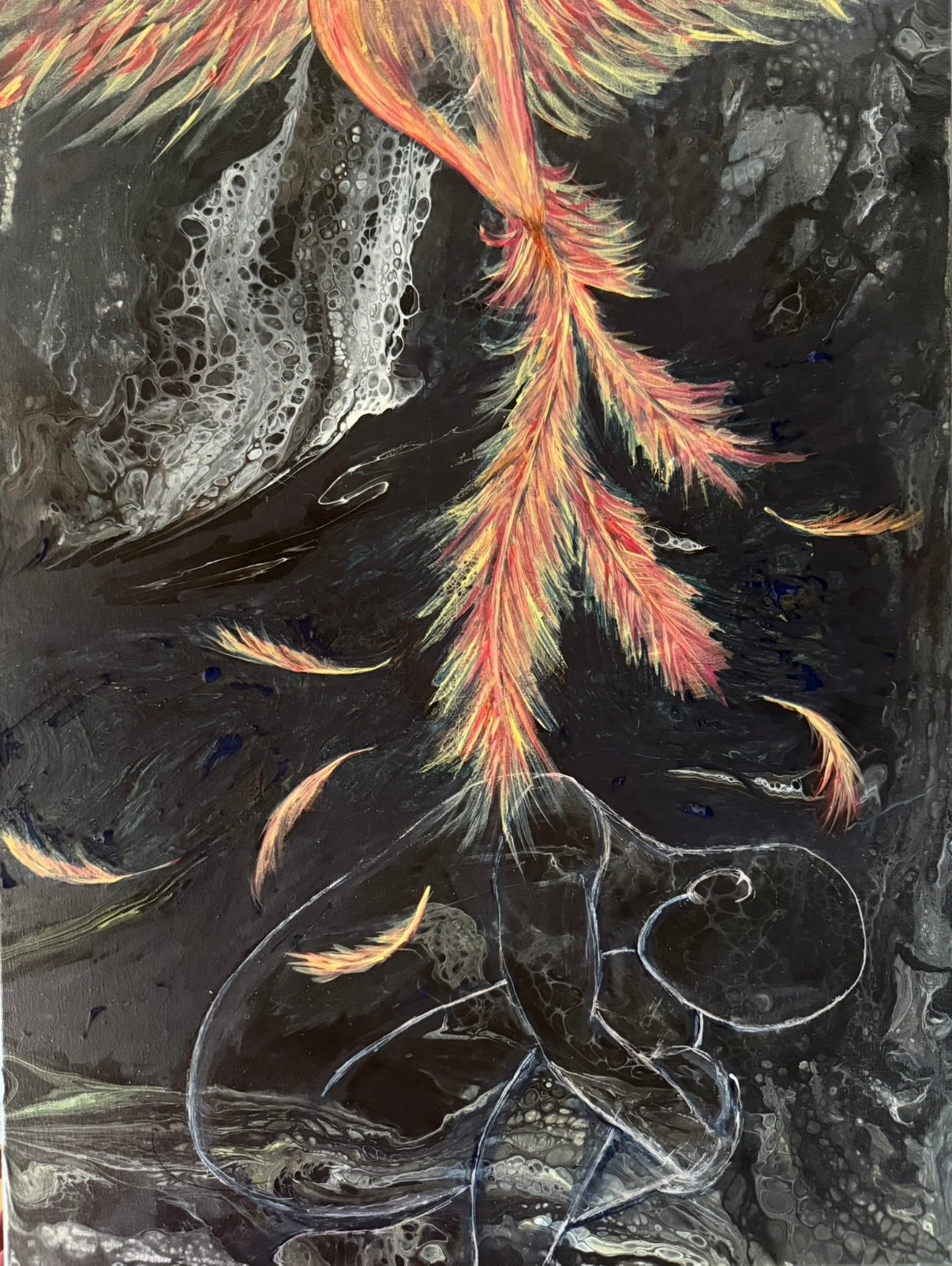 The falling feathers carry the weight of old identities, losses, and truths that no longer need to be held. In their release, something new is taking shape—softly, steadily, from the inside out.