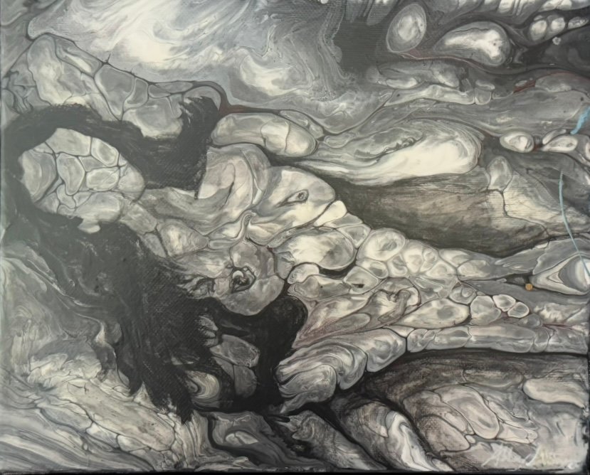 This piece evokes the layered motion of becoming—the way we dissolve, reshape, and reform in cycles known only to the soul. Like sediment drifting and settling, the self is never fixed. It is fluid. In the Wake of Change is a meditation on that quiet aftermath—the beauty found not in certainty, but in the raw, unfinished grace of what remains.